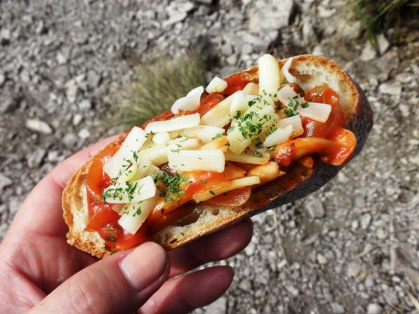 今回のお昼はイロイロのっけパンとポタージュです☆ペロリと食す♪最近この楽しみがあるから登ってる気が…。