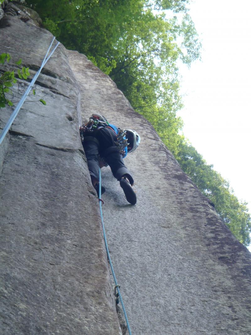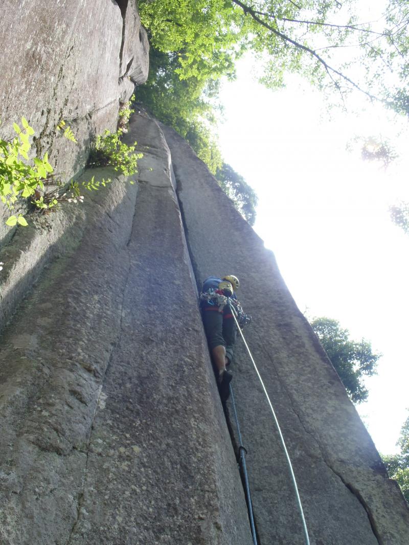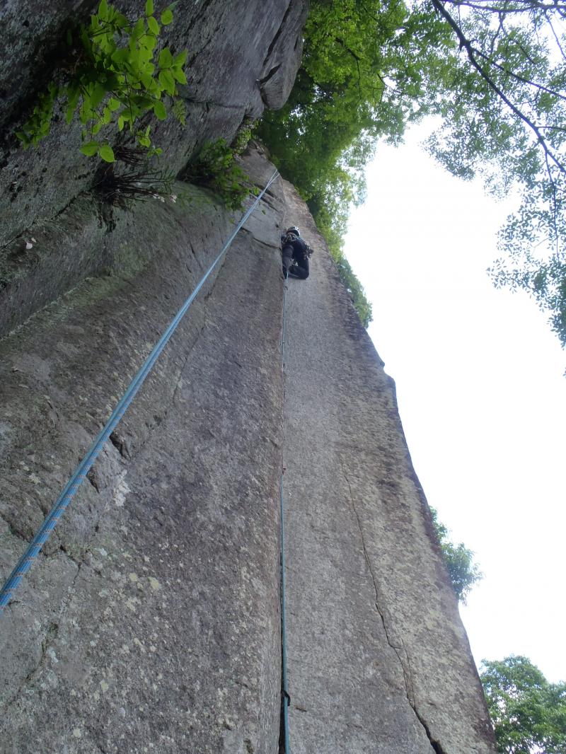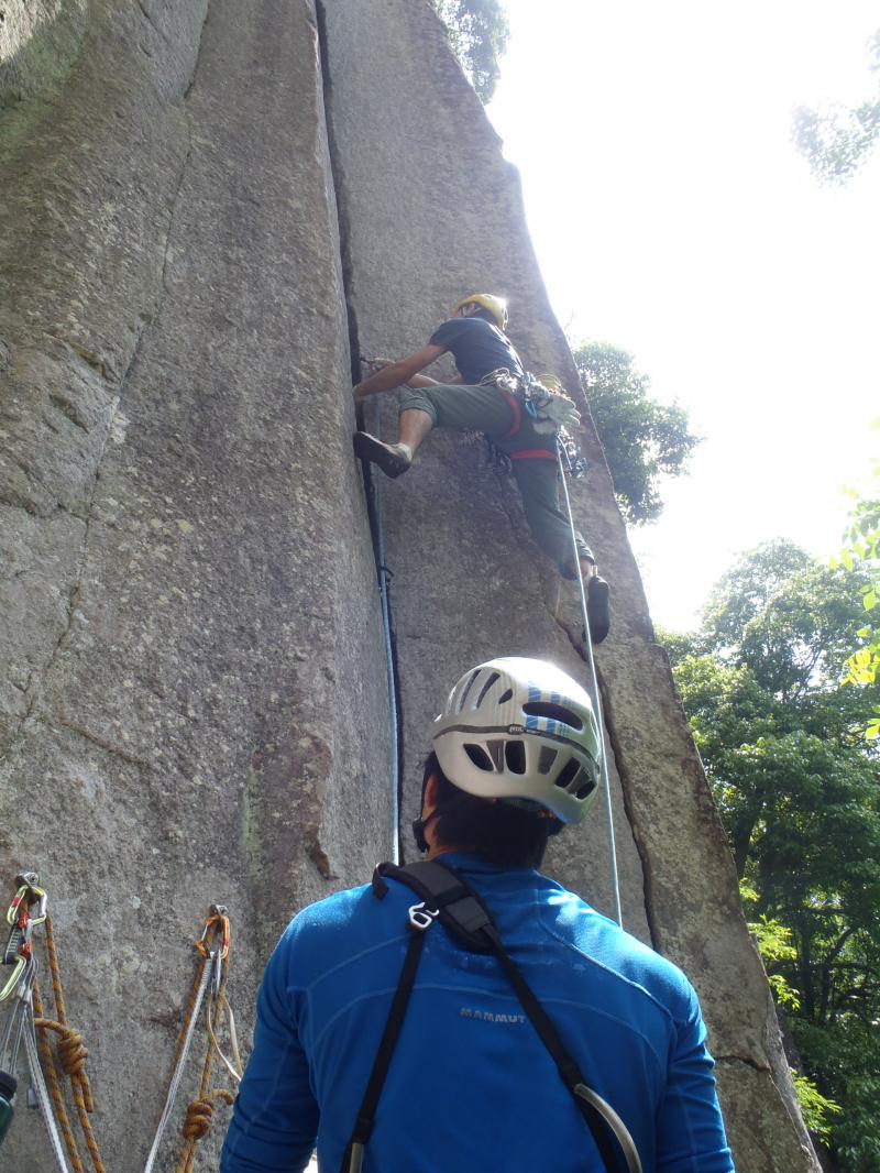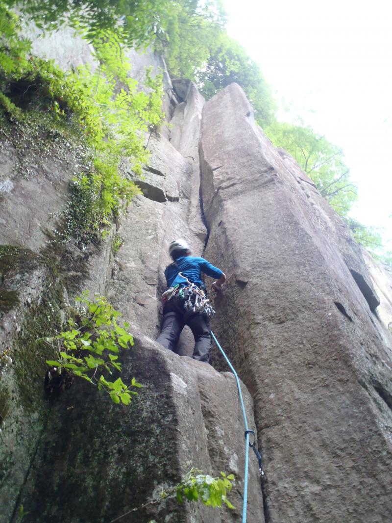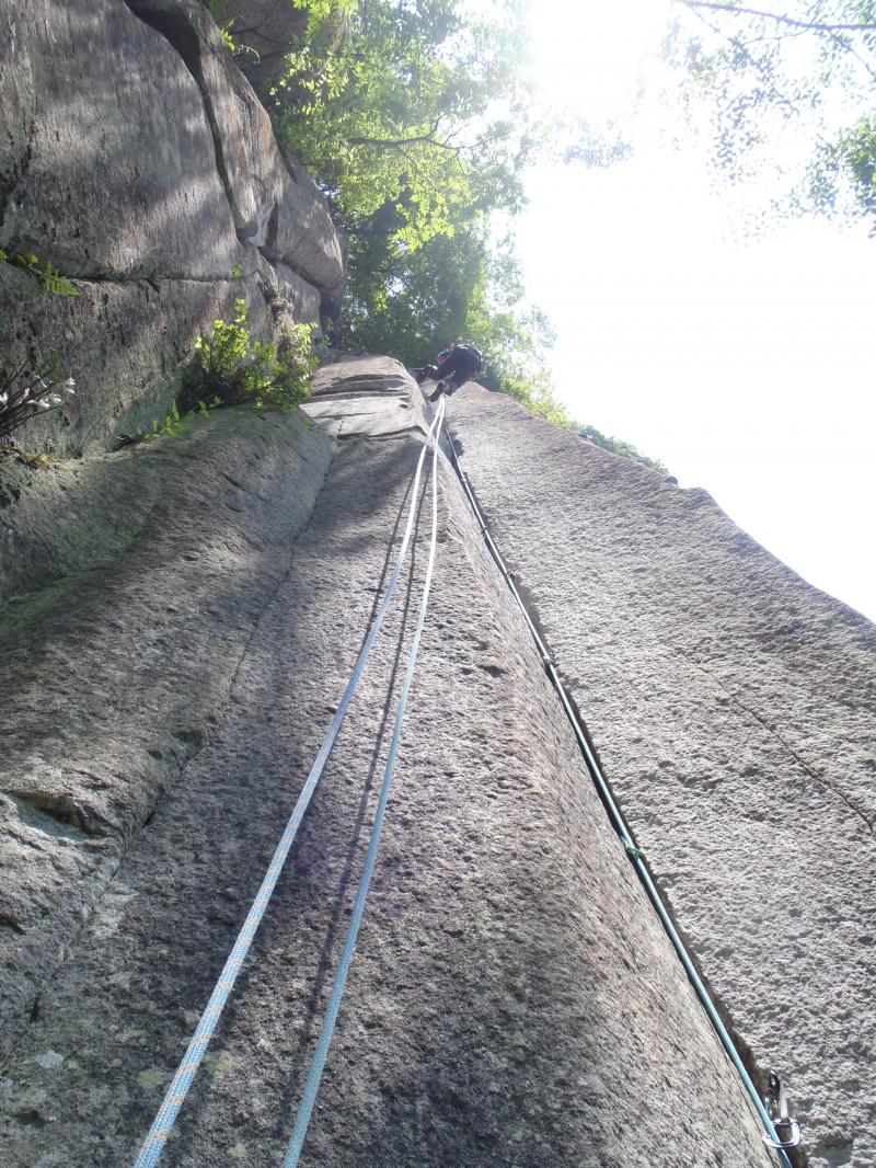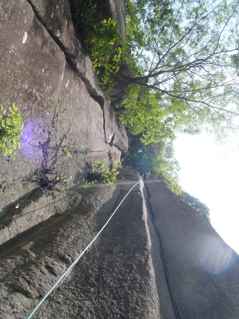 私達は60mロープにバックロープを引いて登りました。下降は懸垂。60mロープでロワーダウンはロープの伸びがありぎりぎりといった感じです。スッポ抜けには注意。