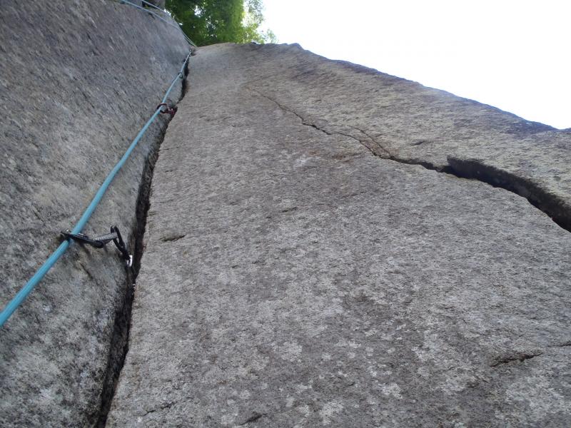 この第一岩壁のフラッグシップルートでもあるこのルート非常に美しいハンドクラック~シンハンド