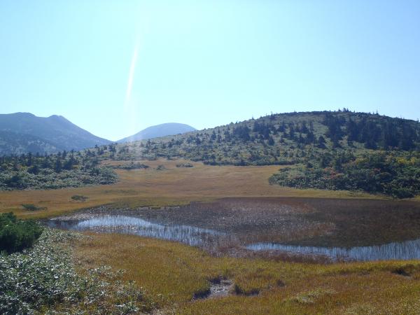湿原周辺は、台風の跡なのか、草は横に倒れ道もぬかるんだ箇所が多かったが、日差しの強い山頂付近よりも紅葉が進んでいて、草紅葉もキレイでした♪