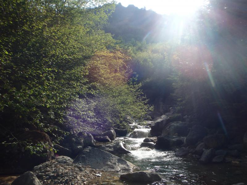 - 廻目平キャンプ場P-30分‐烏帽子岩左稜線とりつき‐360分‐終了点‐45分‐廻目平キャンプ場P