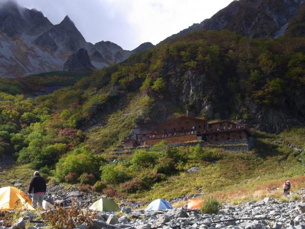 - 10/3 上高地バスターミナル(6:30)~ 明神(7:30)~ 徳沢(8:20)~ 横尾(9:15)~ 本谷橋(11:00)~ 涸沢(12:50)