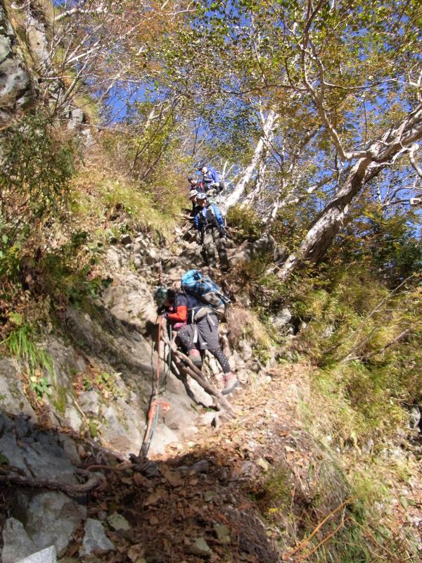 涸沢から屏風のコルへのパノラマコースは、やや高度感のある痩せたトラバースが続き、アップダウンやくさり・ロープが連続するので健脚者向きのコースですが、歩き応えのある良いコースです。屏風ノ頭(今回は賽の河原)からの展望は圧巻!