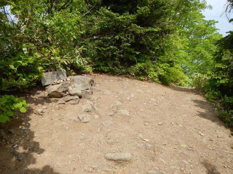 小林峠からの登山道を進んでいくと、三角山手前で中の沢からくる道とぶつかります。行きはなんてことのなかった分岐でしたが、帰りは右か左かの2択を間違えてしまい、中の沢方面に下りて行ってしまいました。分岐地点の標識には距離しか記載されていないため、初めての方は気をつけましょう。