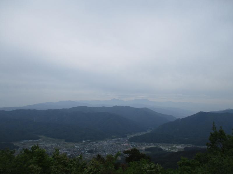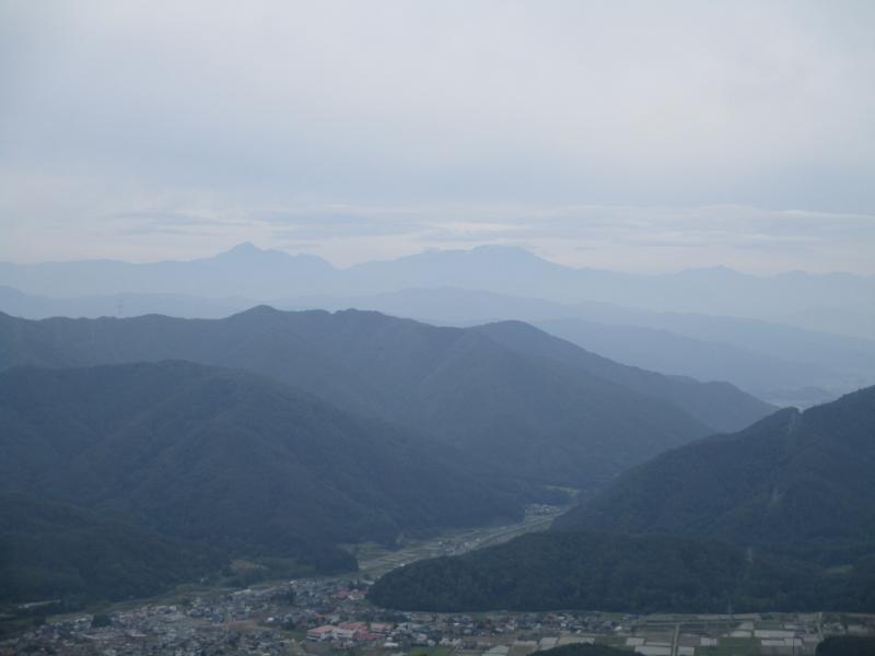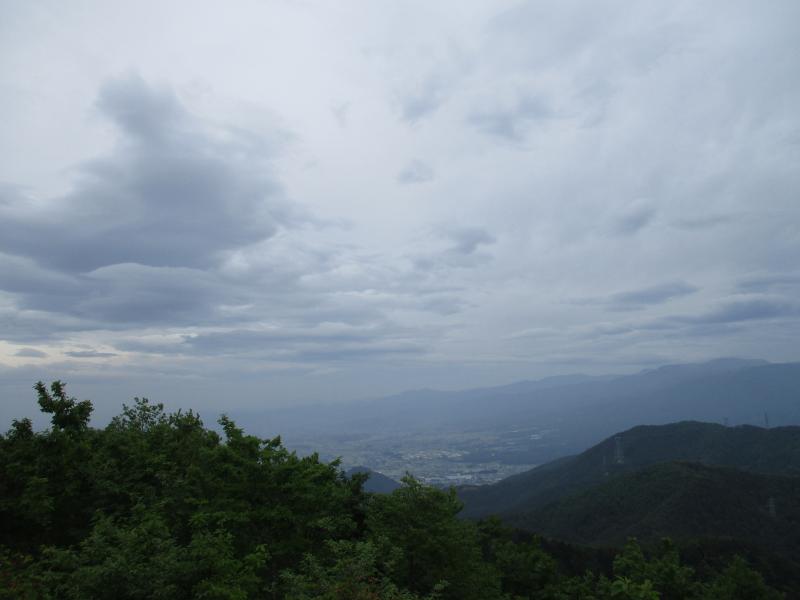今日は曇りで、かろうじて南アルプスと八ヶ岳が霞んで見える程度。