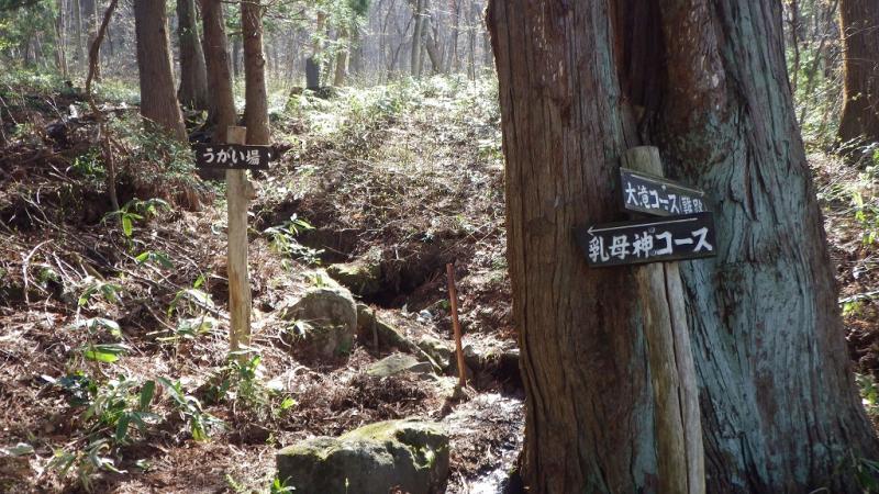 - 瀧山登山口(三百坊側)(30分)うがい場(45分)姥神地蔵(60分)瀧山山頂(60分)瀧山登山口(蔵王温泉側)