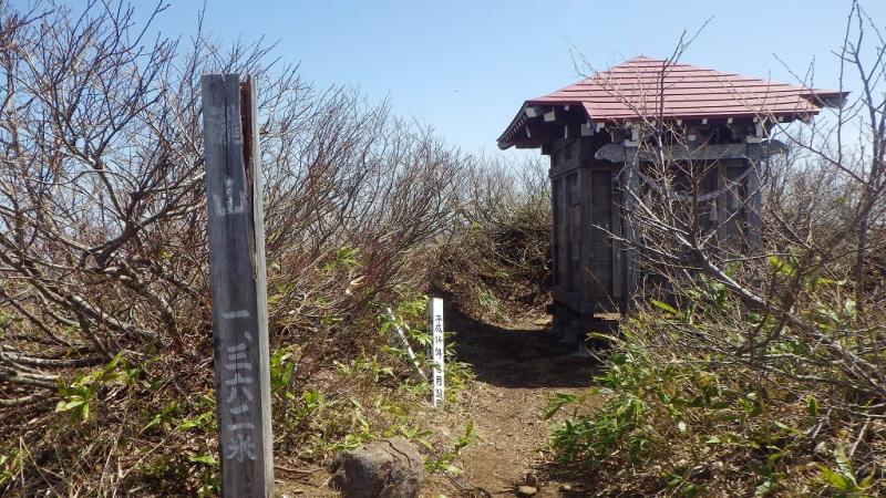 遠くに雪をかぶった真っ白な月山を見ながら登っていくと、