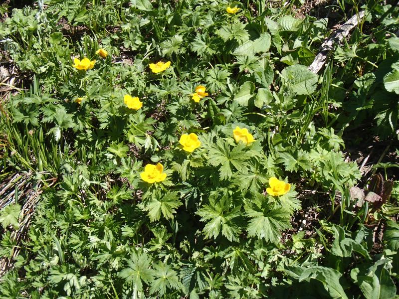 ため凍っているところもありましたが靴で蹴りこめる状態。馬のたてがみ付近ではシナノキンバイが咲き出していました。弥陀ヶ原は7割木道がでている、砂防新道は十二曲り付近もルート上には雪が無い状況。