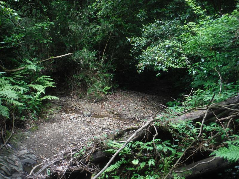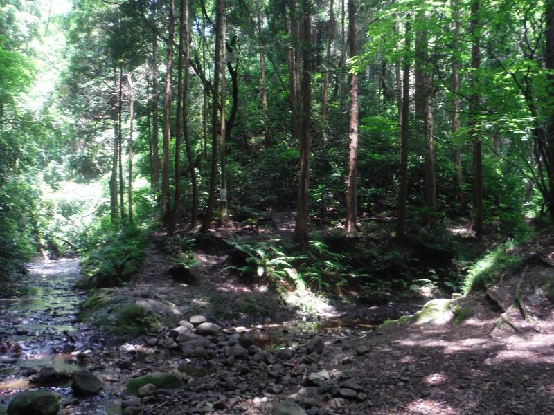 先ほど二子山から下ってきた道を分け直ぐに左から小沢が出合います。