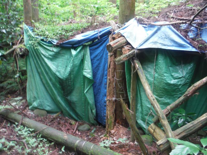 標高100m位で大きな二股になるのですが 右俣の方に小屋があるということなので立ち寄りましたが