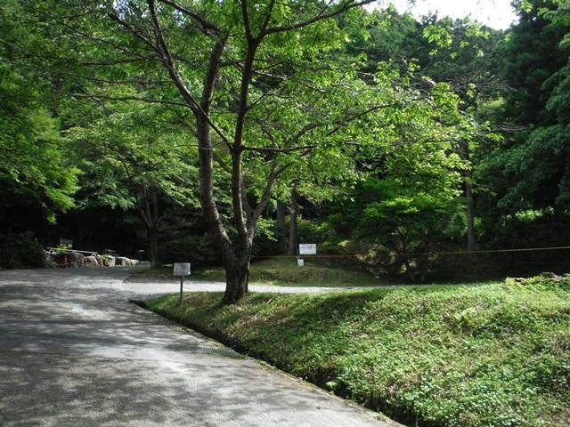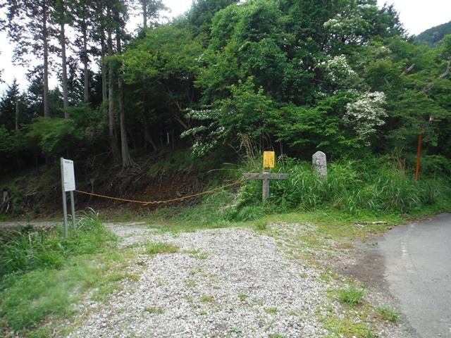 さらにそこから進み林道ゲートの手前に駐車場と簡易トイレ、水場(くずはの泉)があります。