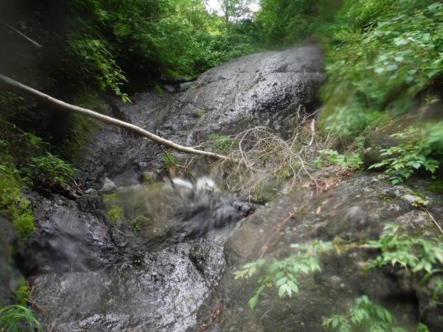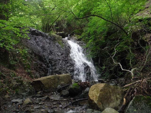 富士形の滝は左から容易に上がれ この辺りまで来ると水量もかなり少なくなります。
