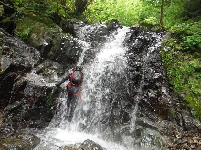 この沢一番の難易度の滝で、安易に取りつかない方が良いでしょう。