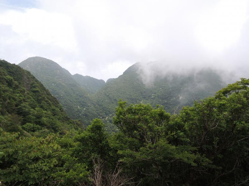 普賢岳からの下り、岩に苔が多く滑りやすいのでご注意ください。