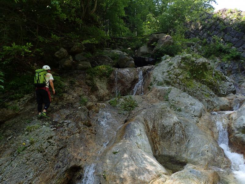 壊れた堰の手前の8m滝だけが直登難しい。けれど右岸に巻きが付いています。