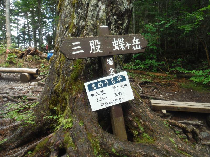 - 三股(1時間30分)まめうち平(2時間)蝶ヶ岳(20分)蝶槍(20分)蝶ヶ岳(1時間)まめうち平(40分)三股