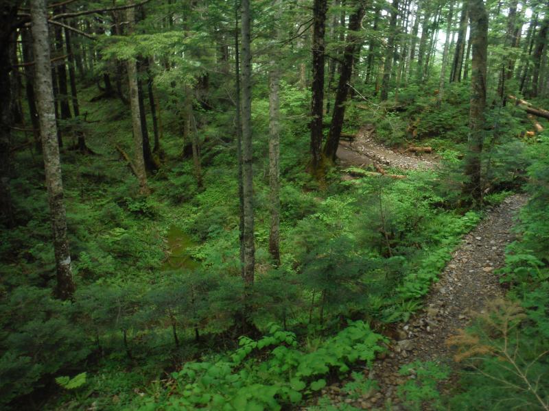 - まめうち平から少し進んだところの樹林帯は水たまりが多かった。
