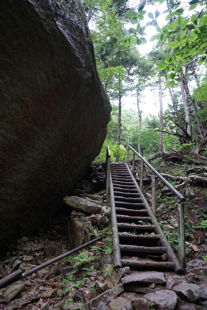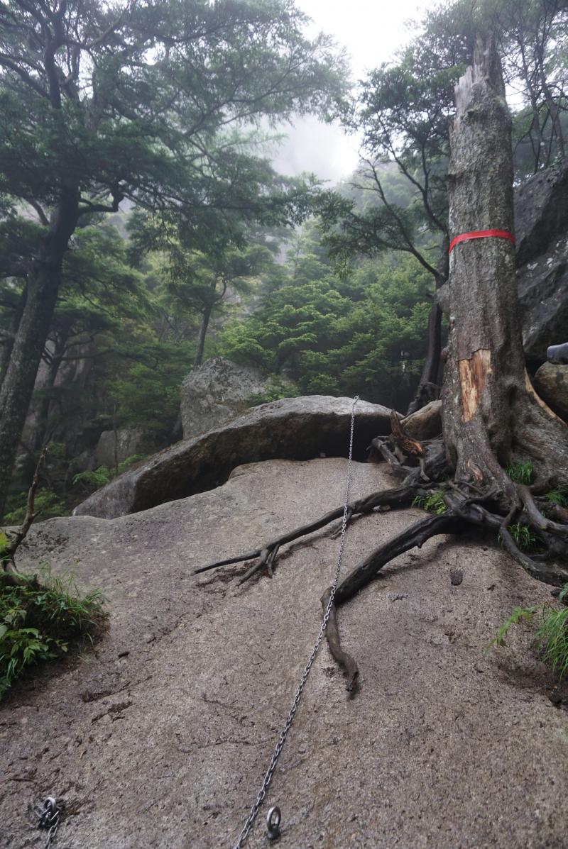 蛇紋岩の様な滑りやすい岩ではありませんが、鎖場や岩場が多いので濡れていると余計な神経を使います。