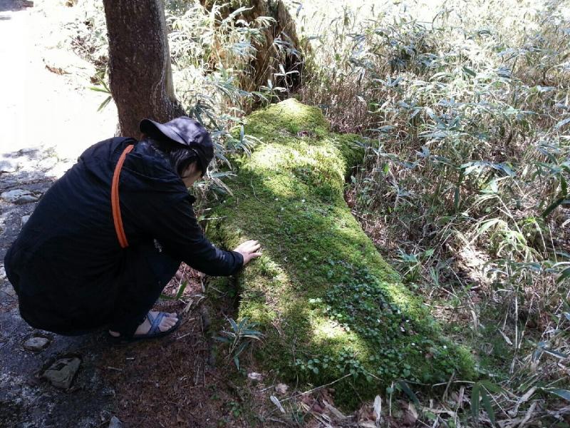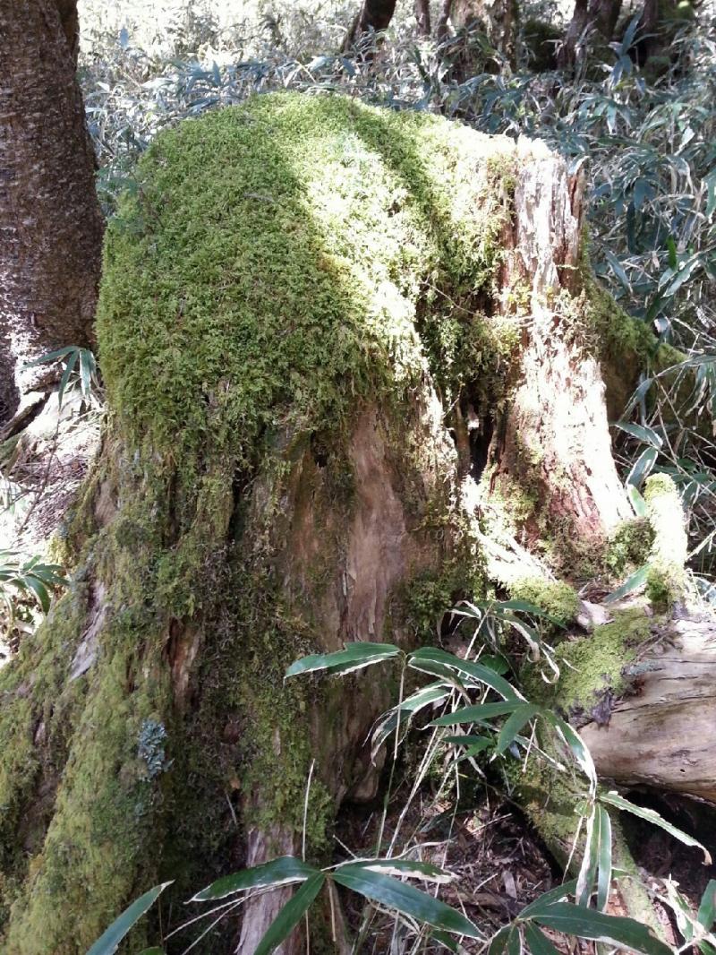 道は、駐車場から日出ヶ岳への道中 左手側にあります。右を見ても左を見ても苔コケこけ。