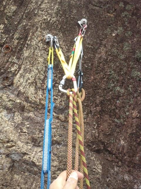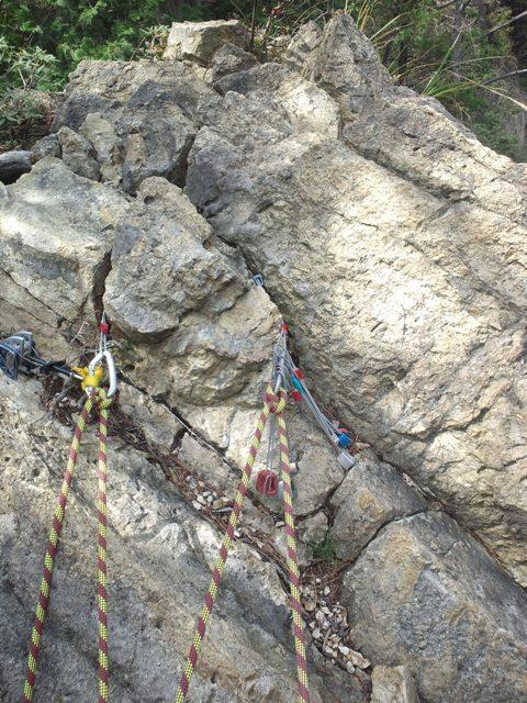 エイト環とムンターヒッチ(半マスト結び)でビレイしました。