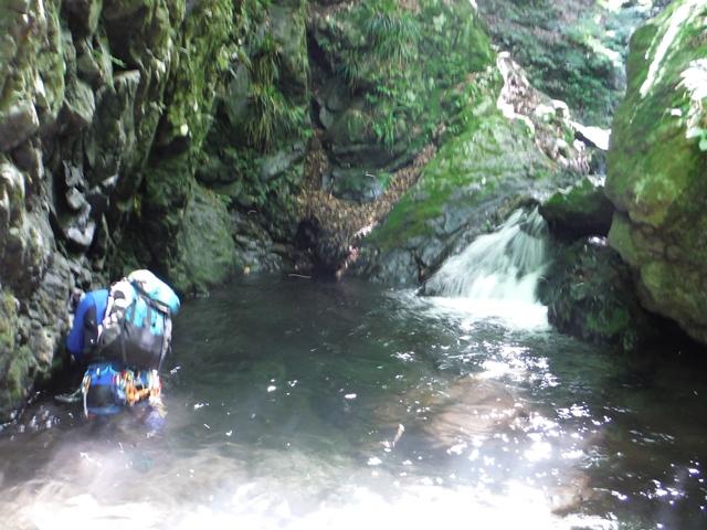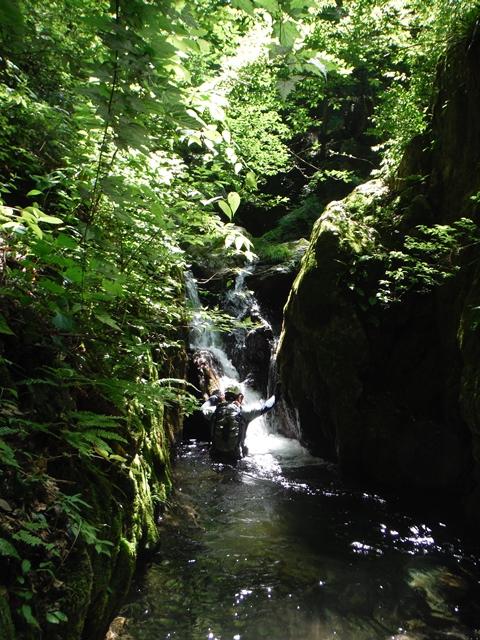 前半の7m滝 右壁を登りますが見た目悪そうで躊躇が入りました(;´д`)