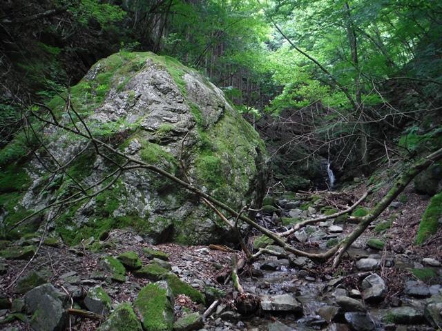 右岸に桟橋が見えてくると間もなく大ダワ沢手前の大岩です。