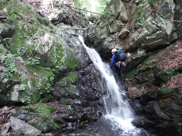 逆川:聖滝上辺りから川乗谷本谷へ降りる。小滝、段差が多く距離や標高差の割には足に来る。滝も滑るものが多いので注意が必要。出発時間、メンバーによっては大ダワ沢、ウスバ林道で打ち切りも視野に