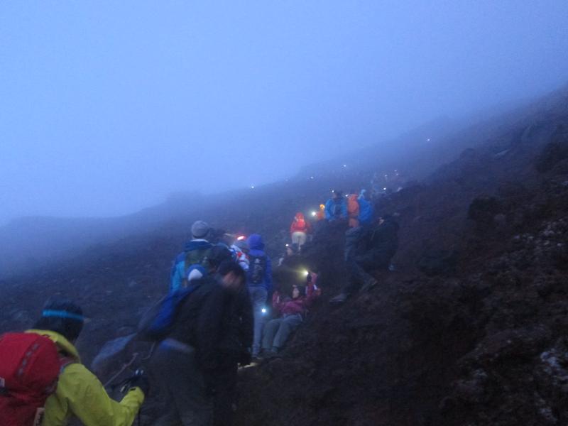 3:30 4℃ 本八合目(弱風、レインウェア、レイングローブ、ニット帽着用)