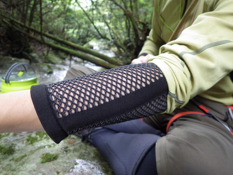 上半身:今回初めてミレーのドライナミックメッシュ3/4を使用。それにファイントラックのフラッドラッシュをレイヤリング。その上に薄いウィンドブレーカー。初めての使用なので比較も難しいが、感想は遡行中に思った以上に冷え感がなくて驚いた。何度か全身濡れたりしたが基本的に冷たいという感じはなかった。ただし昼食時には冷えを感じた。とにかく今後も色々と試してみたいと思う。