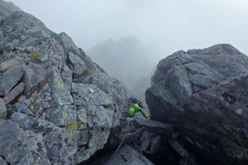 - クライミングルートのチムニー内は濡れており服でフリクションを加えました。