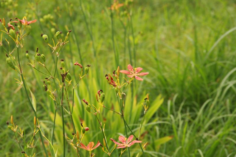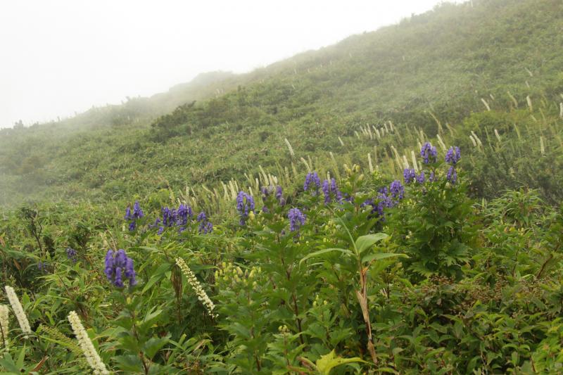 コオニユリ、檜扇の美しい5合から なぜが本日は淡々と登り、二時間ほどで頂上に。山頂手前はサラシナショウマが群生、なんともいえない風景です。トリカブトと白と紫のお花が 稜線を彩ります。