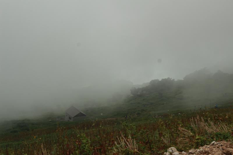 山頂につくなりガスです。本日は少し登山者も少なめでした。