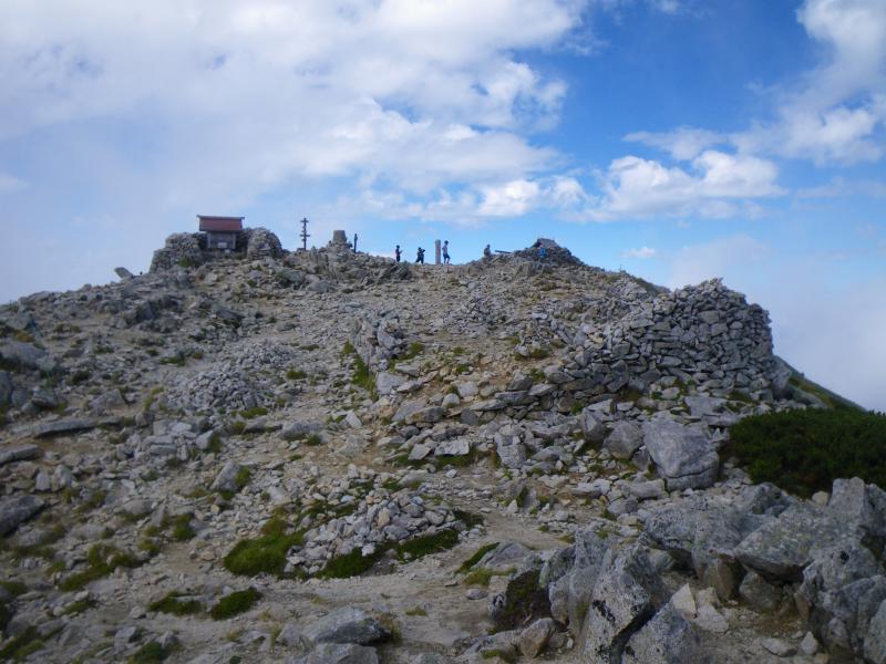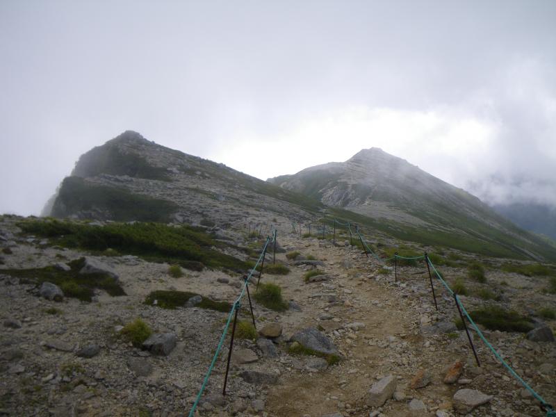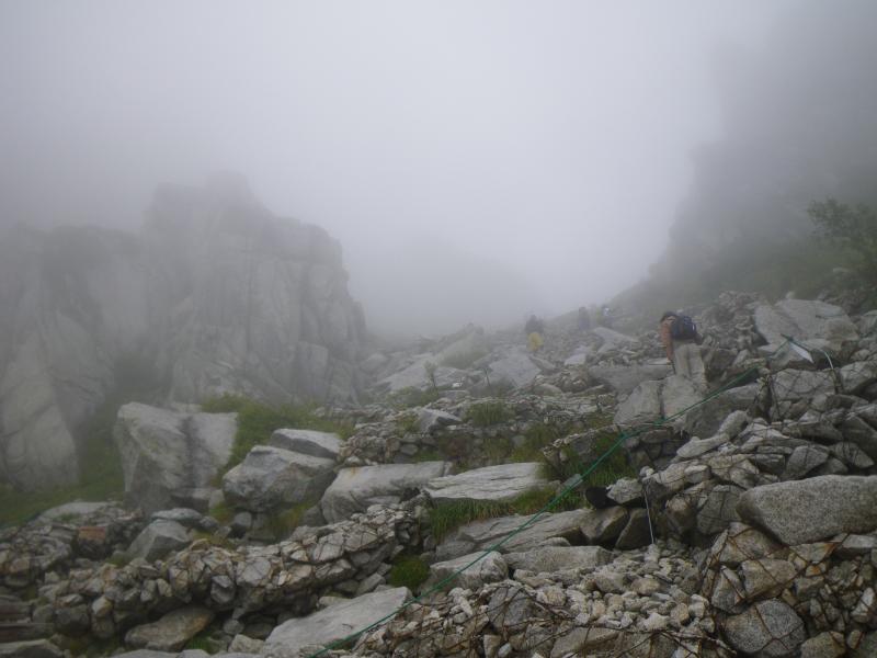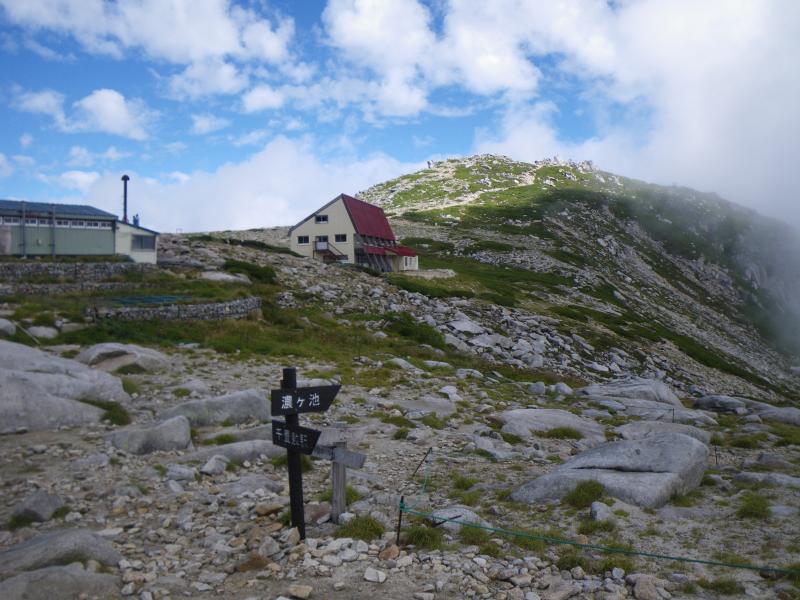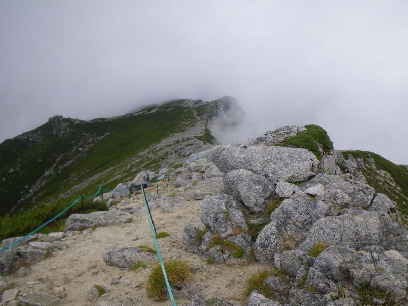 千畳敷駅は16℃で涼しさは快適で、時間待ちはないにせよ平日でも登山客や観光客が多かったです。今日は昼から天候が悪化するのが分かっっていた為に木曽駒ヶ岳⇒宝剣岳という順に歩きましたが、宝剣岳から先はさすがに人が少ない感じでさらにガスが立ち込め、静かでした。