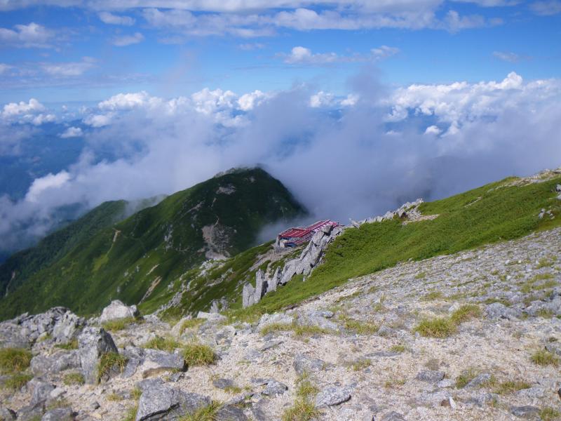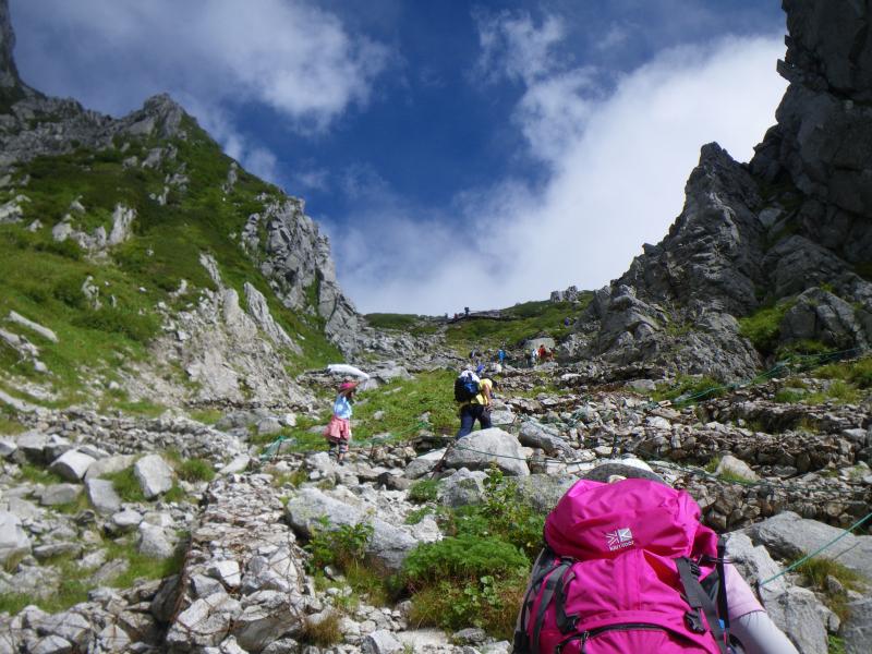 ⑦宝剣山荘~宝剣岳は山頂直下にトラバース気味の鎖があり、スリップ注意
