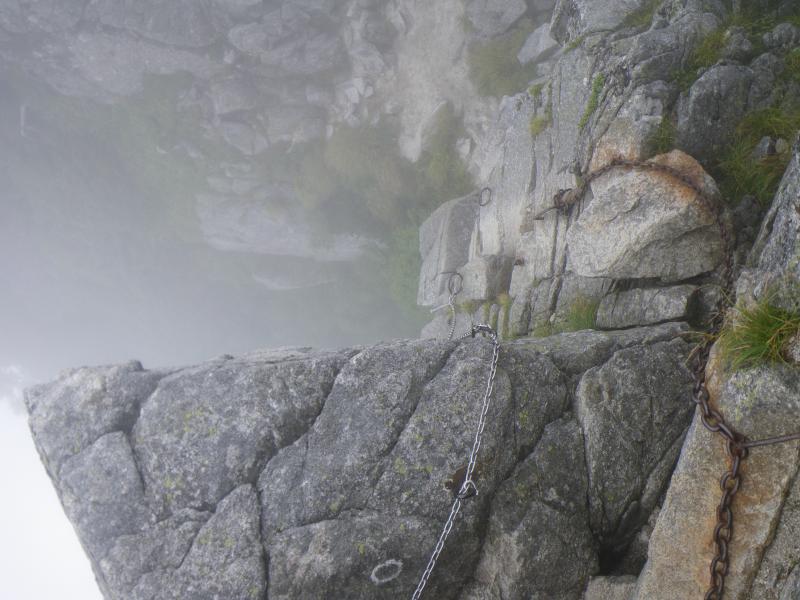 ⑧宝剣岳~三ノ沢分岐は山頂直下から鎖が連続し、岩潜りや痩せ尾根トラバース、直登の鎖などがありますが、岩はしっかりしていて、しっかり持てば問題はないですが。道を外さぬように注意したい