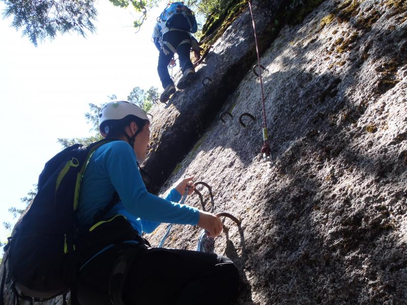 装備:クライミング用具(ヘルメット、ハーネス、アプローチシューズ、スリング×2~3、