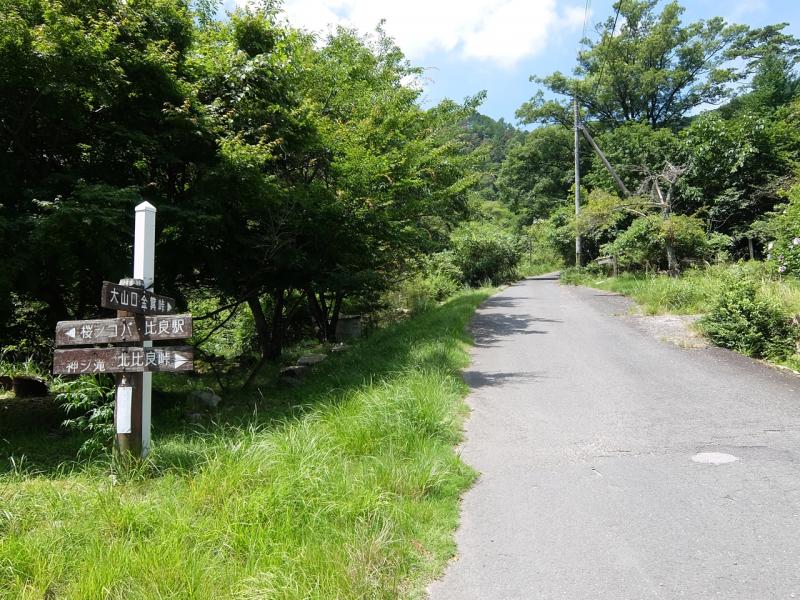 比良駅からイン谷口までは、田畑の真ん中を通り、神社の横の道から住宅街、そして鬱蒼とした森の中を歩いて行くと到着します。