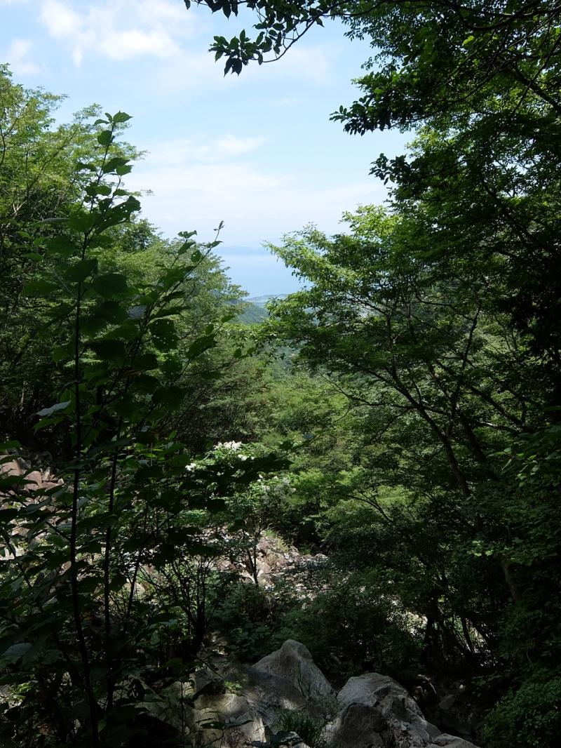 涼しい谷筋、湧水が豊富で安心、稜線歩きも楽しい、連なる山々も美しい、足元に広大に広がる琵琶湖も美しい。