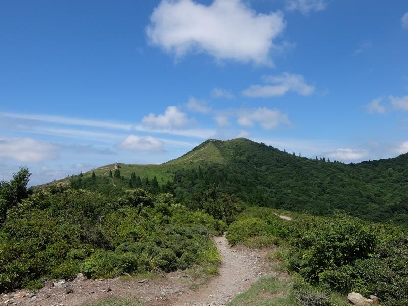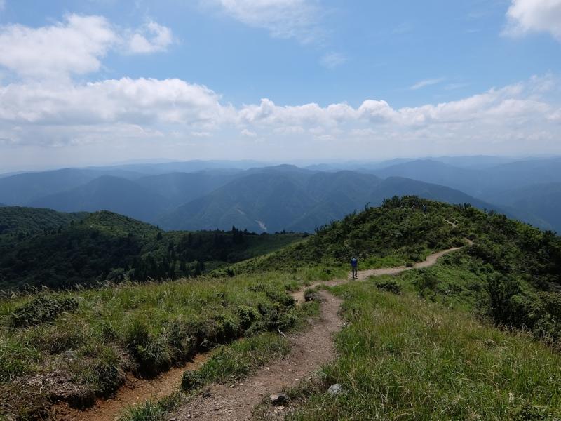 歩きやすい稜線の道です。天候が悪い場合は隠れるところがないです。