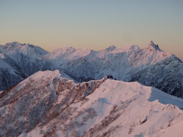 山頂は狭く、雪庇も張り出しており、安心できる場所ではありませんでした。