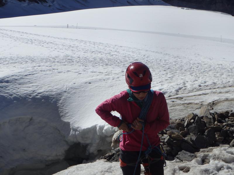 昨日と同じように駅のトンネルをぬけ、また学習もせずメンヒ南東稜まで高所順応せずに歩き出します。遠くに目をやるとすでに取りつきから登り始めているパーティーもいます。