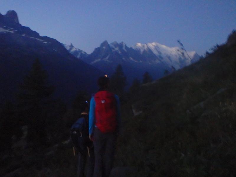 ホテルの朝食が食べたかったので、夜明け前にヘッドライトをつけて登ります。