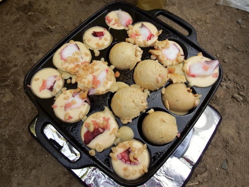 家で愛用している鉄製のたこ焼き器(重い)をドヤ顔で出す私。