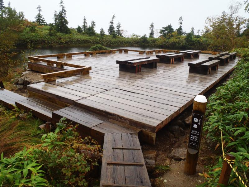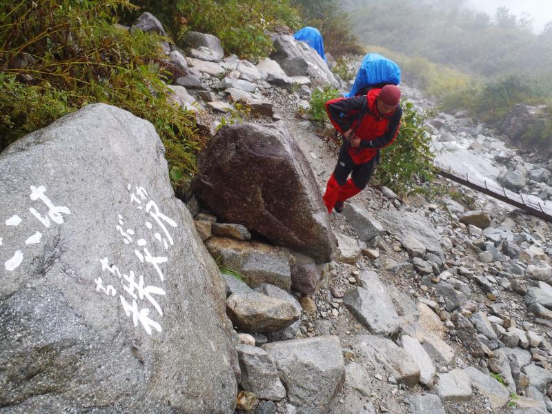 鏡平山荘に着くまで雨は強くなったり小雨になったりで、