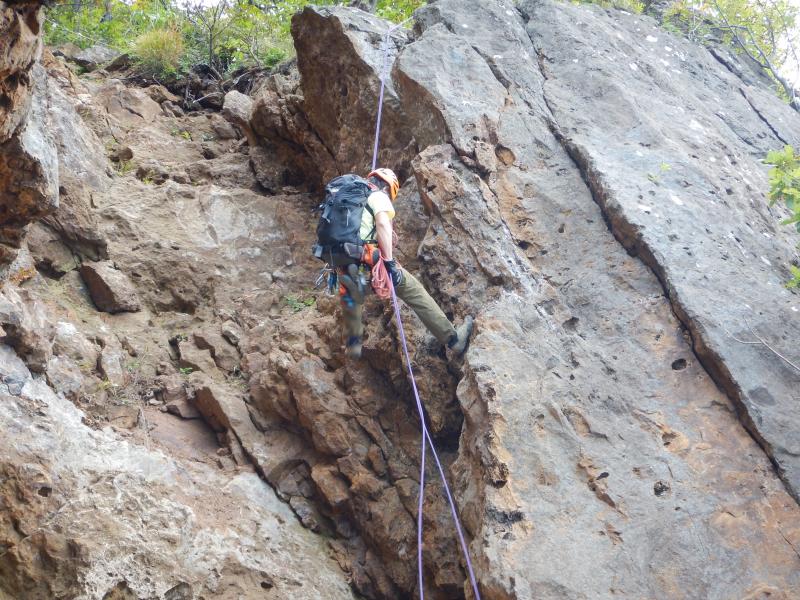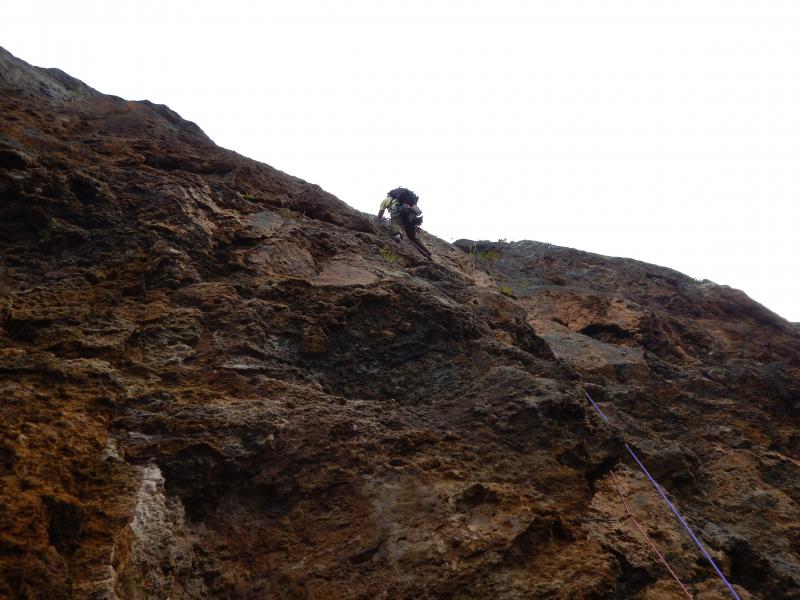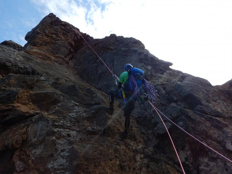 アクセスには懸垂下降を2,3度行いますが、コースが非常にザレているため