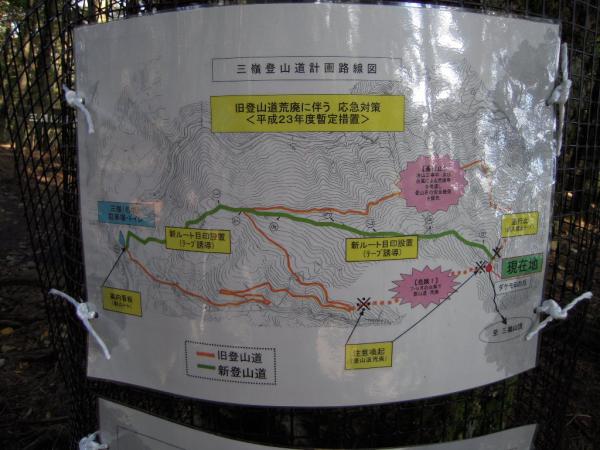 台風以降、名頃駐車場からすぐのところに新しい登山道が作られていますので、現地の案内ではそちらが推奨されています。