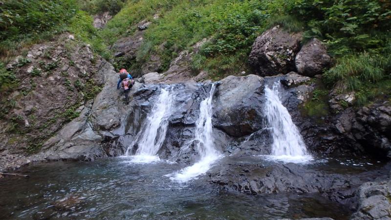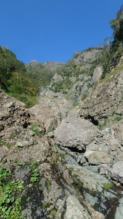 計画を立てる度に雨で中止敗退を繰り返してきましたがようやく3度目の正直でポントナシベツ川直登沢を遡行することができました。4年前に本流を遡行しているのですがその時は核心部の大半が雪渓に埋まっていました。今回は9月中旬ということもあり、雪渓は全くなくその渓相を全て見ることができました。