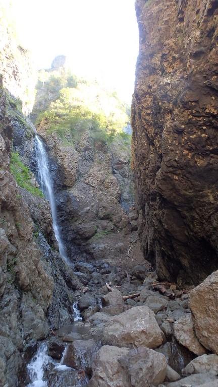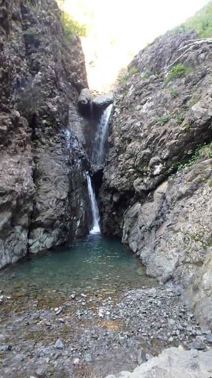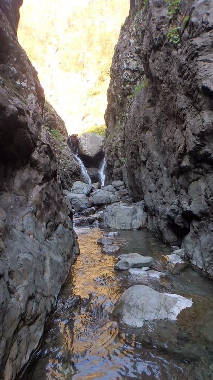 肌寒川までは平坦なゴーロですが、この出合を過ぎると段々と沢は険しくなります。手ごわい滝が出てきて840m位からは迫力ある岩盤状のゴルジュが続く核心部となります。直登できない滝もあり高巻きとなりますが、ライン取りが難しく緊張感ある遡行が続きます。時期によっては巨大な雪渓も残ります。