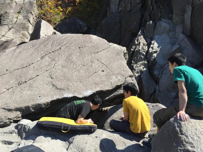 このエリアは大きな岩壁の真下にあるので、落石には十分注意して下さい。また、夏場にはマムシにも気を付けて下さい。