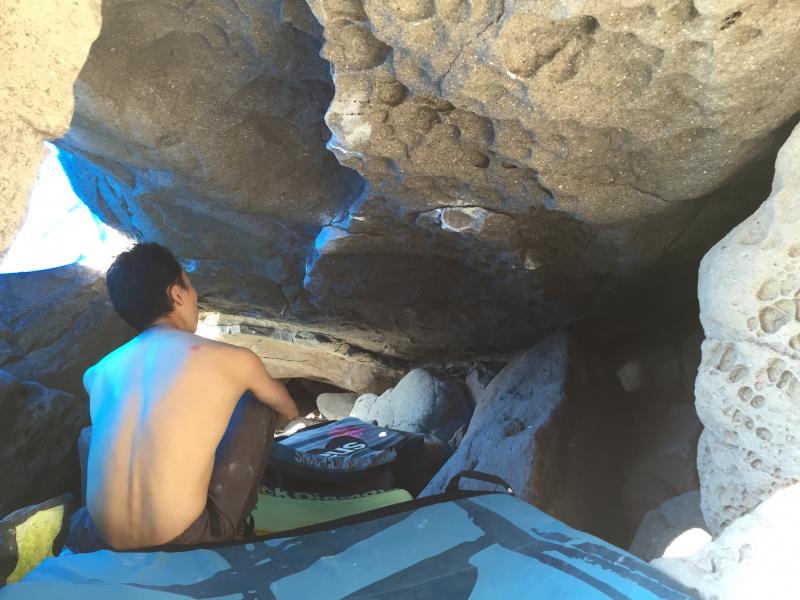 天気が良いと常に日が当たっているエリアなので、岩は温まりやすいです。予報では、最高気温が20℃くらいでしたが、昼間は半袖、短パンでも十分でした。